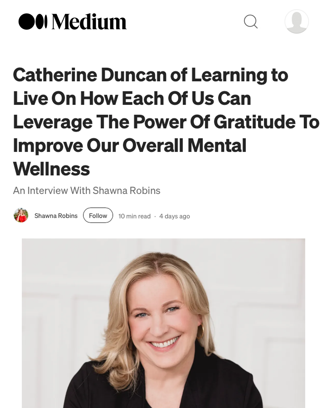 Episode titled “A closer look at mindfulness and spirituality in health care” by neurologist Dr. Joe Sirven featuring Catherine Duncan on NPR.